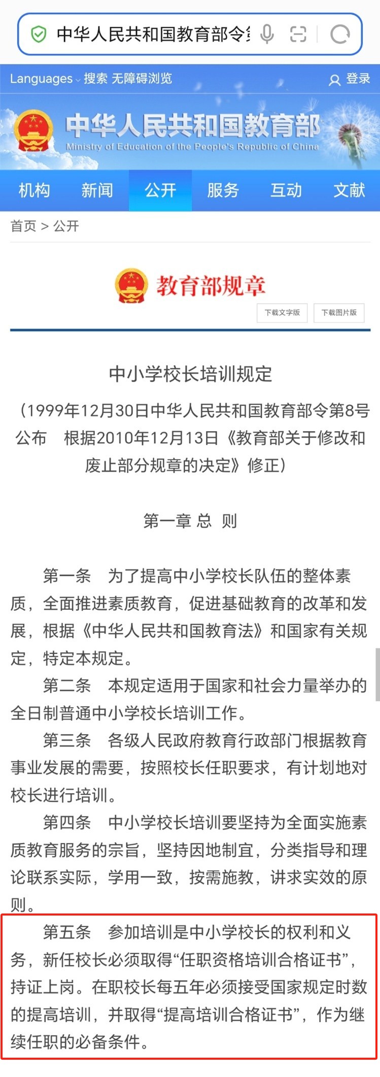 根据教育部《中小学校长培训规定》(教育部令第8号)明确要求:参加培训是中小学校长的权利和义务,新任校长必须取得 “任职资格培训合格证书”,持证上岗;任职资格培训需围绕校长岗位职责必备知识与技能开展,累计培训时长不少于 300 学时。